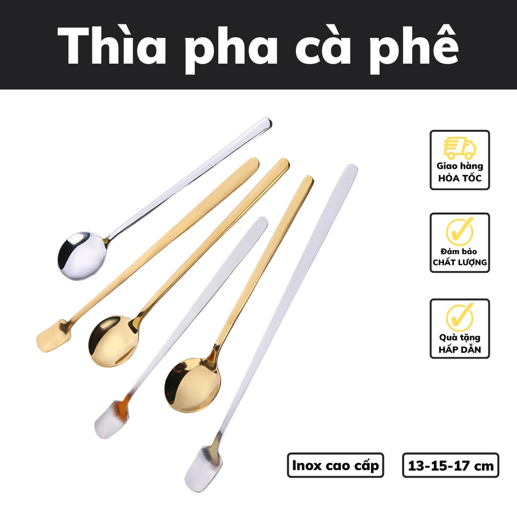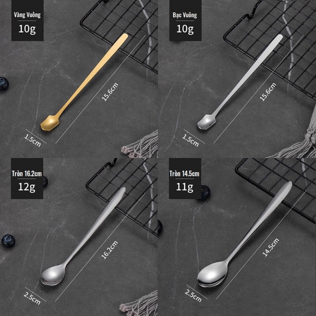 Thìa pha cà phê inox 304 mạ vàng pha trà muỗng cafe cán dài kiểu dáng hiện đại thiết kế sang trọng chiều dài 13-15-17 cm