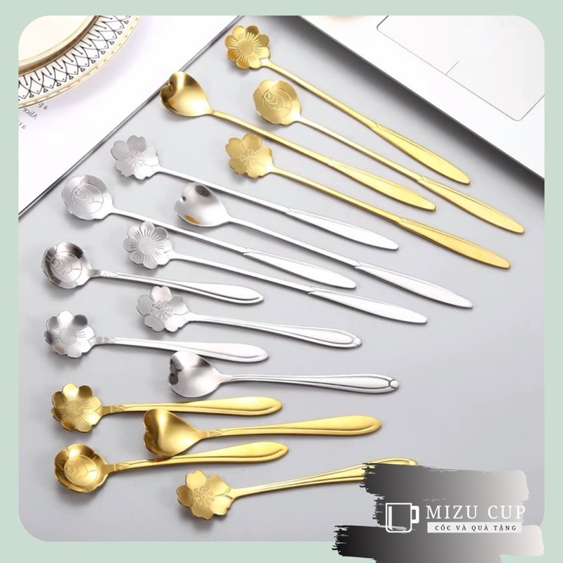 Muỗng Cà Phê Inox Cán Dài Dễ Thương Hình Bông Hoa Phong Cách Hoàng GiaTÍNH NĂNG NỔI BẬT: