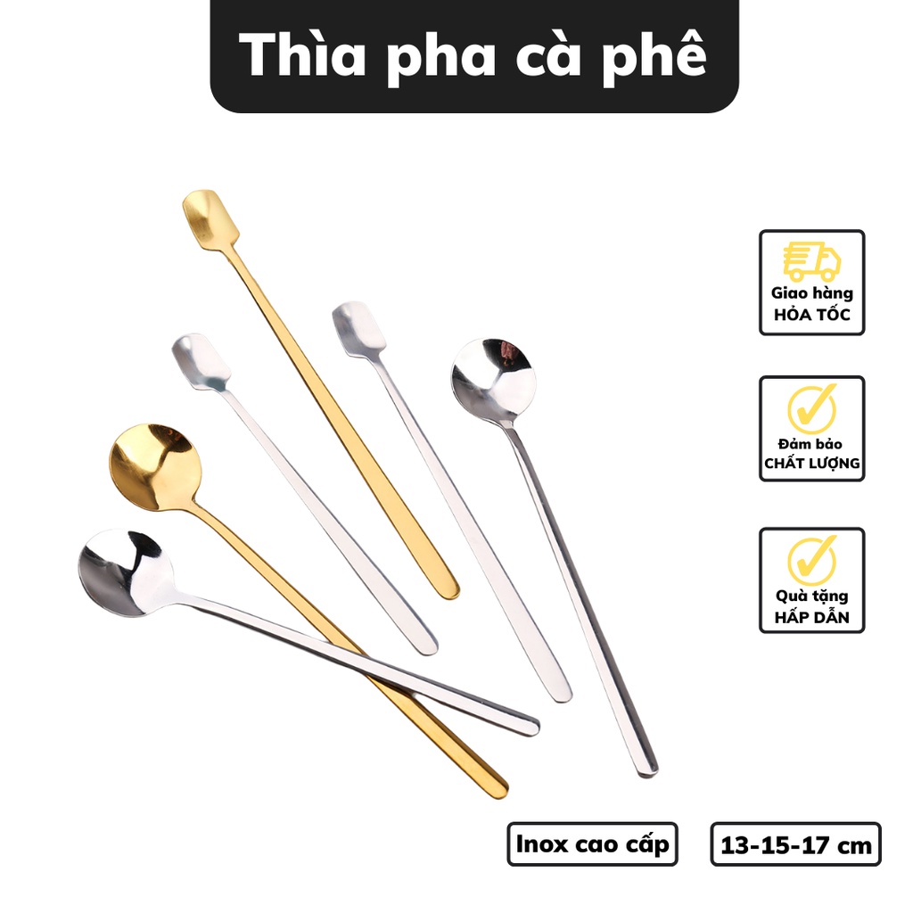 Thìa pha trà inox 304 muỗng cafe cán dài dụng cụ pha cà phê kiểu dáng sang trọng chiều dài 13 - 15 - 17cm