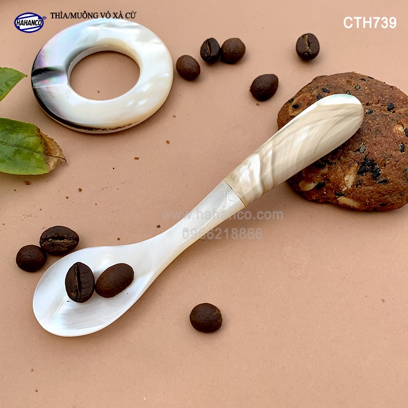Thìa vỏ Xà Cừ /Ốc biển cao cấp VIP - Ăn kem / xúc gia vị / thìa cafe (CTH739) HAHANCO