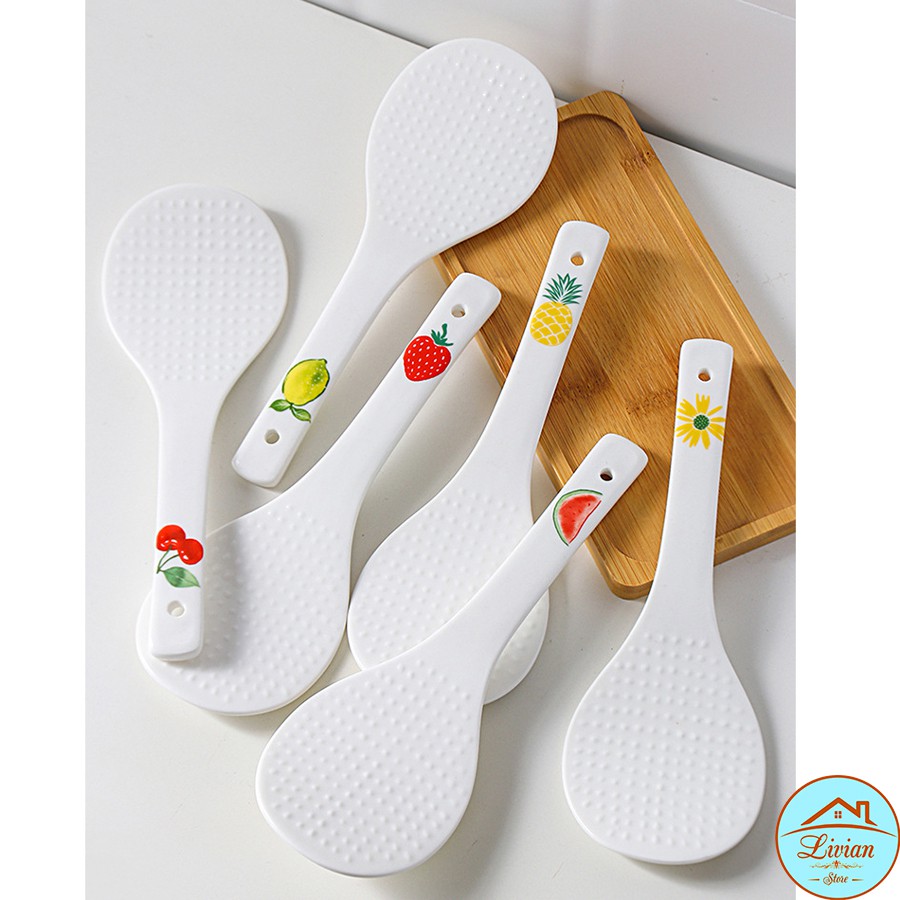 __THÔNG TIN SẢN PHẨM:✅ Tên sản phẩm: Thìa xới cơm, muỗng cơm bằng sứ trắng cao cấp họa tiết hoa quả cực xinh