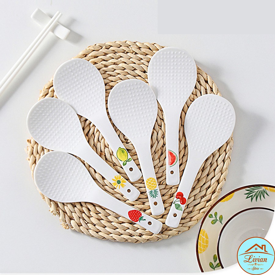 Nhà cửa & Đời sống > Bộ đồ bàn ăn > Bộ dao kéo || Thìa xới cơm, muỗng cơm bằng sứ trắng cao cấp họa tiết hoa quả cực xinhCòn hàng