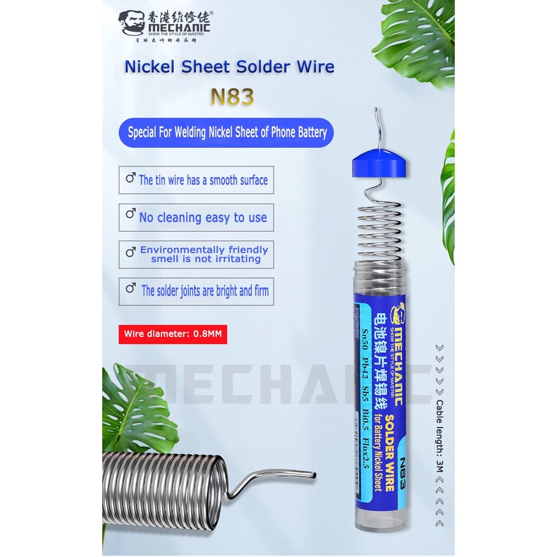 Nhà cửa & Đời sống > Dụng cụ & Thiết bị tiện ích > Dụng cụ > Dụng cụ hàn điện || Thiếc hàn Niken N83/ 2UUL/ MaAnt/ RL-444 0.8mm*3m chuyên hàn cell pinCòn hàng