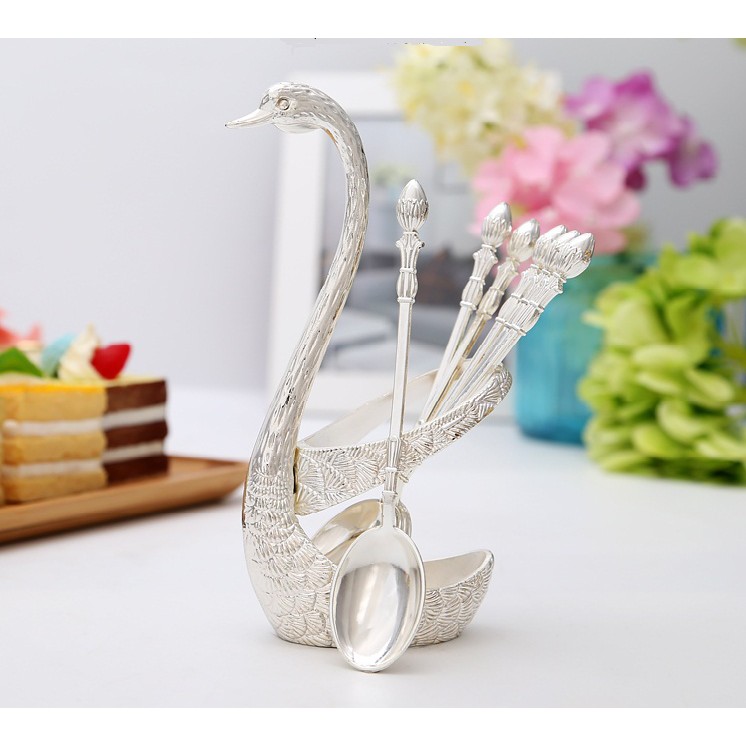 Thiên nga trang trí, đựng dĩa ( nĩa ) thìa hợp kim, màu vàng màu bạc