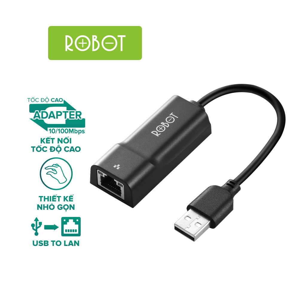 Máy tính & Laptop > Phụ Kiện Máy Tính > Bộ chia cổng USB & Đọc thẻ nhớ || Thiết Bị Chuyển Đổi Ethernet Adapter ROBOT EA10 USB 2.0 to LAN Tốc Độ 10/100Mbps Hàng Chính Hãng Bảo Hành 12 ThángCòn hàng