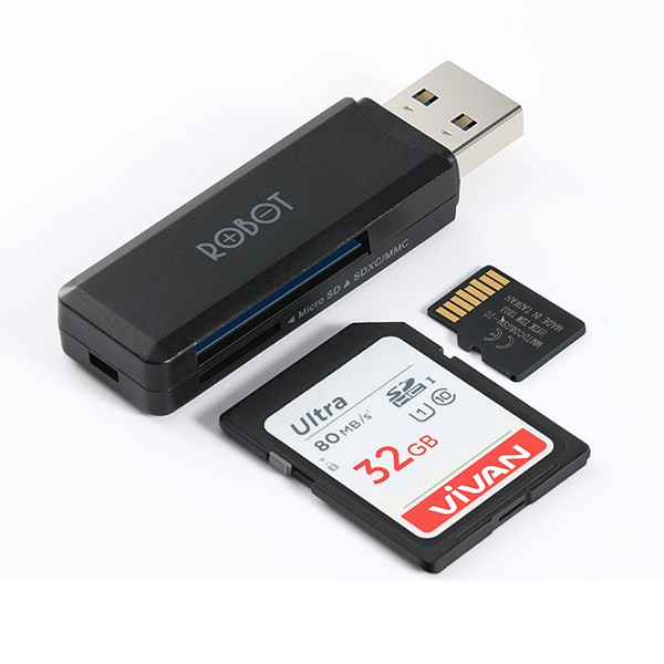 Máy tính & Laptop > Phụ Kiện Máy Tính > Bộ chia cổng USB & Đọc thẻ nhớ || Thiết Bị Đọc Thẻ Nhớ ROBOT CR102 USB 3.0 Dùng Cho Thẻ Nhớ SD Và Micro SDCòn hàng
