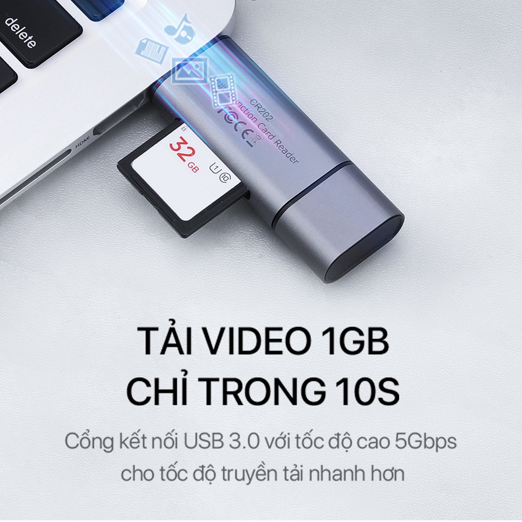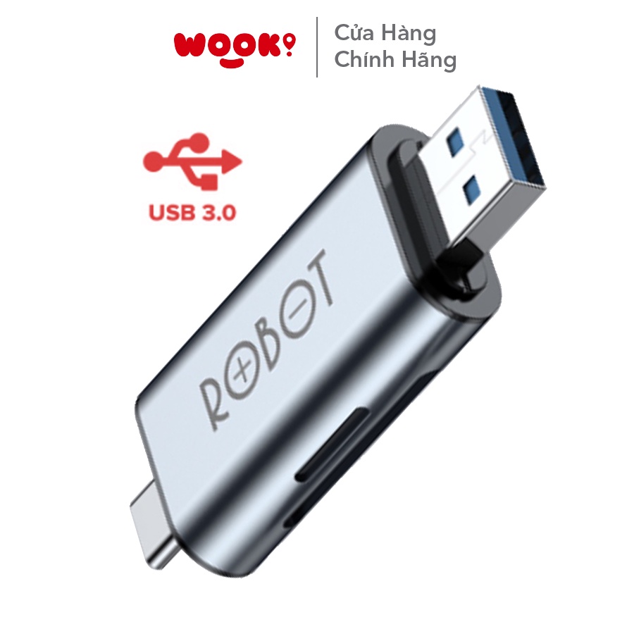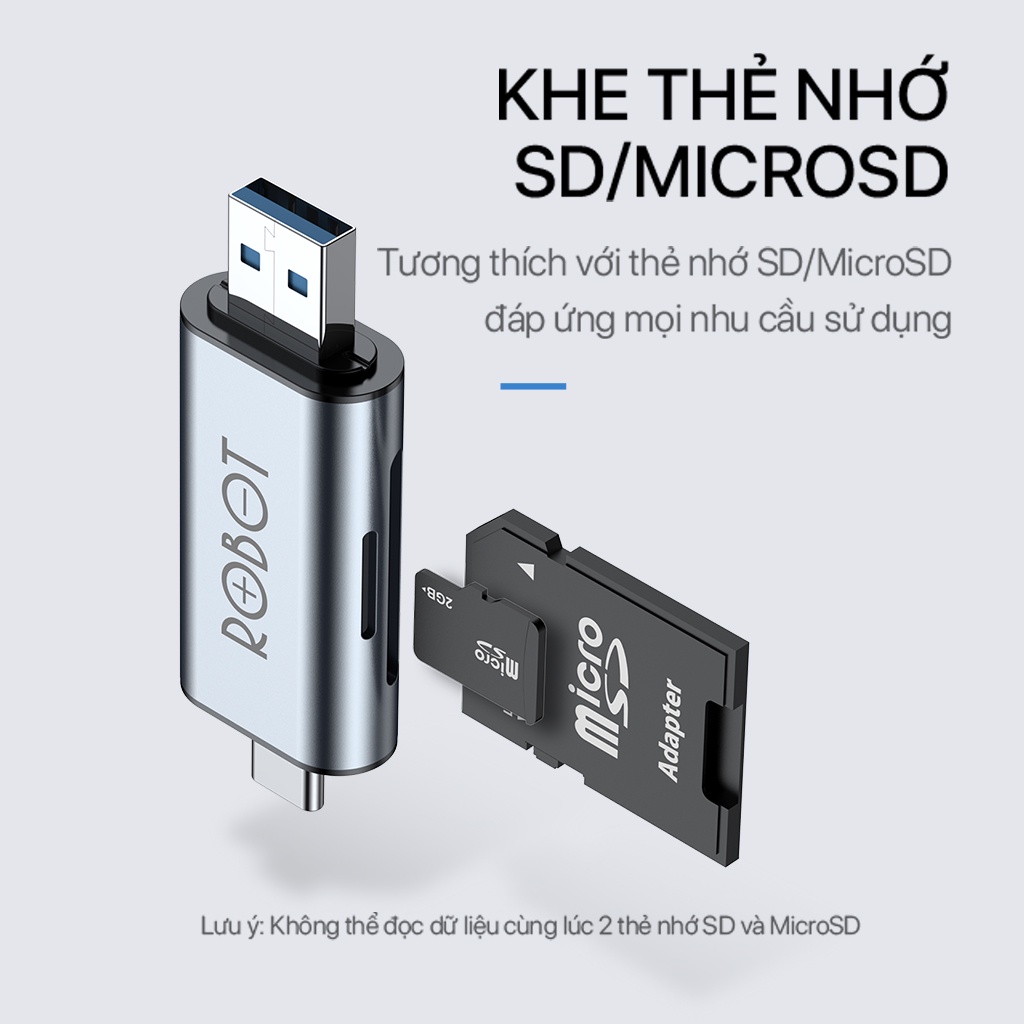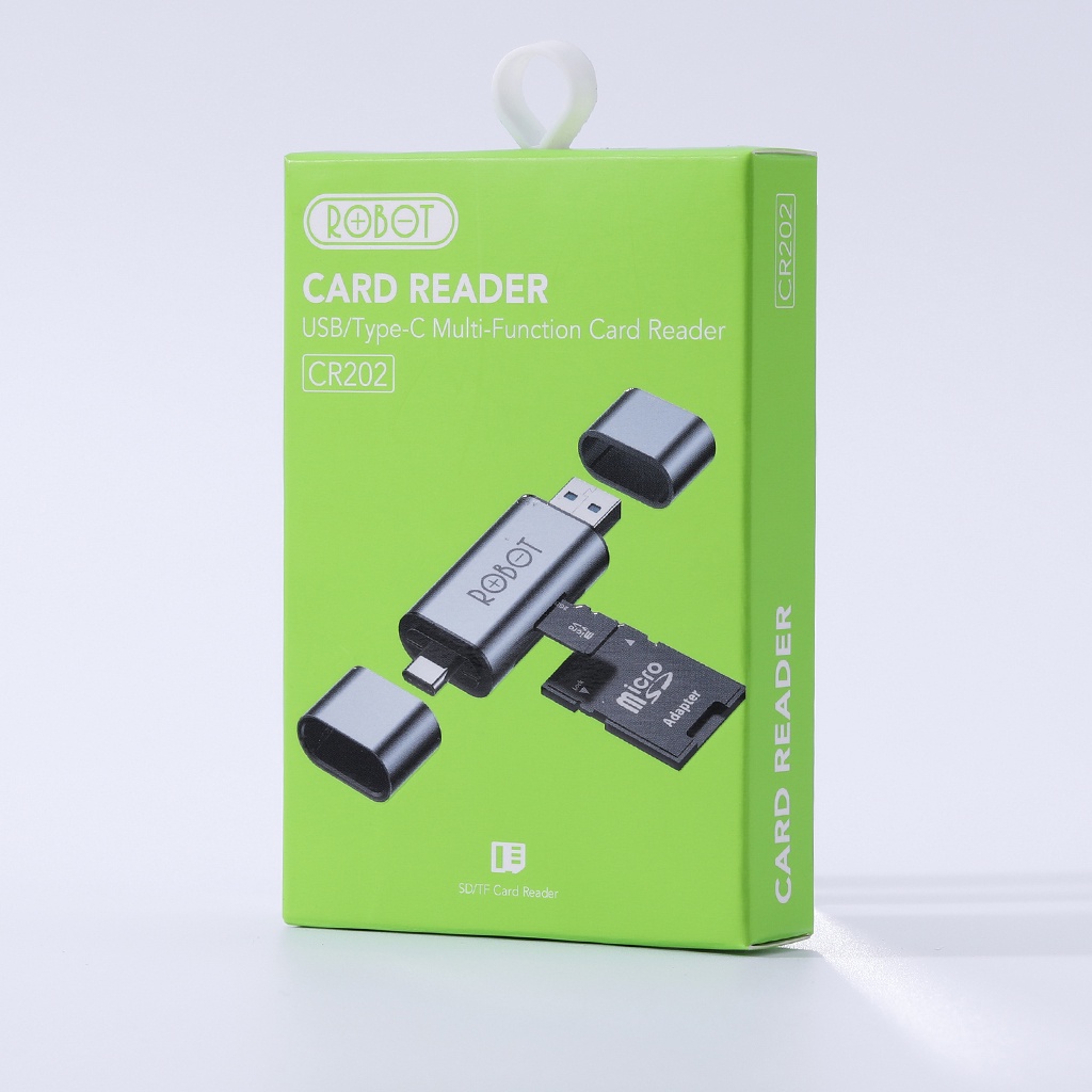 THIẾT BỊ ĐỌC THẺ NHỚ SD/ MICRO SD ROBOT CR202 - HAI ĐẦU TYPE-C VÀ USB 3.0 - BẢO HÀNH 12 THÁNGSản phẩm chính hãng ROBOT