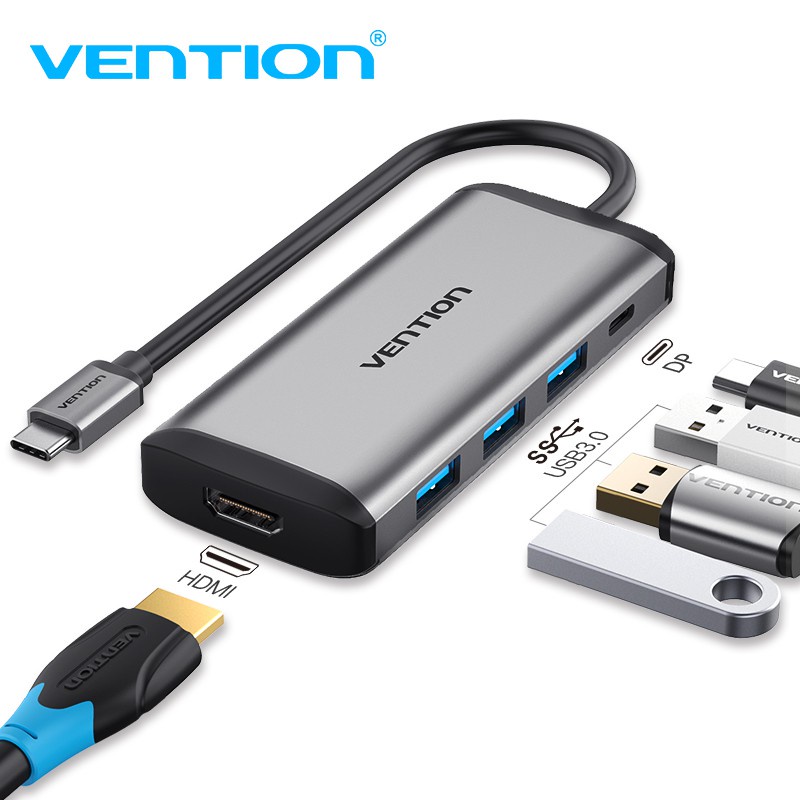 Máy tính & Laptop > Thiết Bị Lưu Trữ > USB & OTG || Thiết bị kết nối đa cổng Vention chuyển đổi USB Type C sang 4K HDMI 5 trong 1 cổng sạc PD USB 3.0Còn hàng