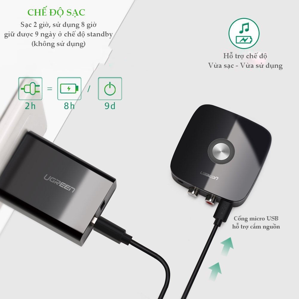 Ugreen Bluetooth 4.1 Music Receiver 30445 hoạt động thời gian: lên đến 4 giờ