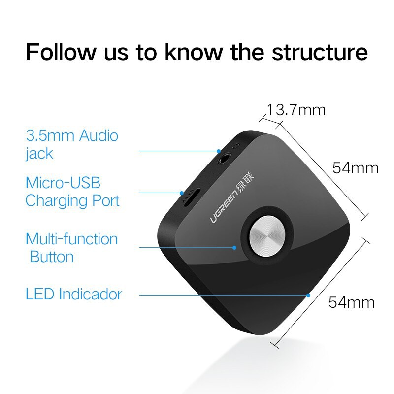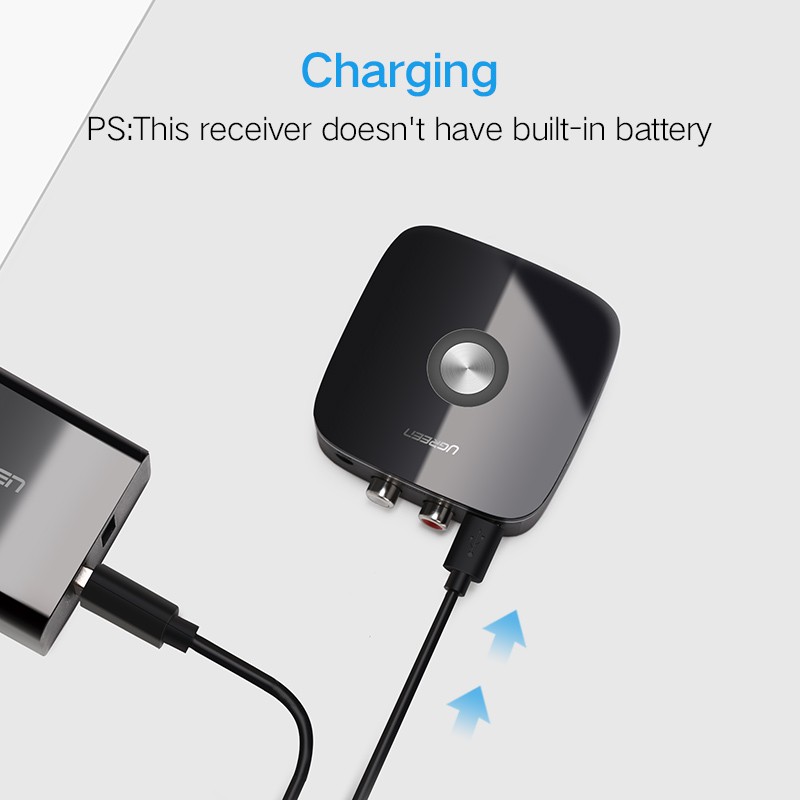 Phạm vi nhận tín hiệu bluetooth của Ugreen 30445 lên tới 10m, có cổng tiếp điện thông qua Micro US