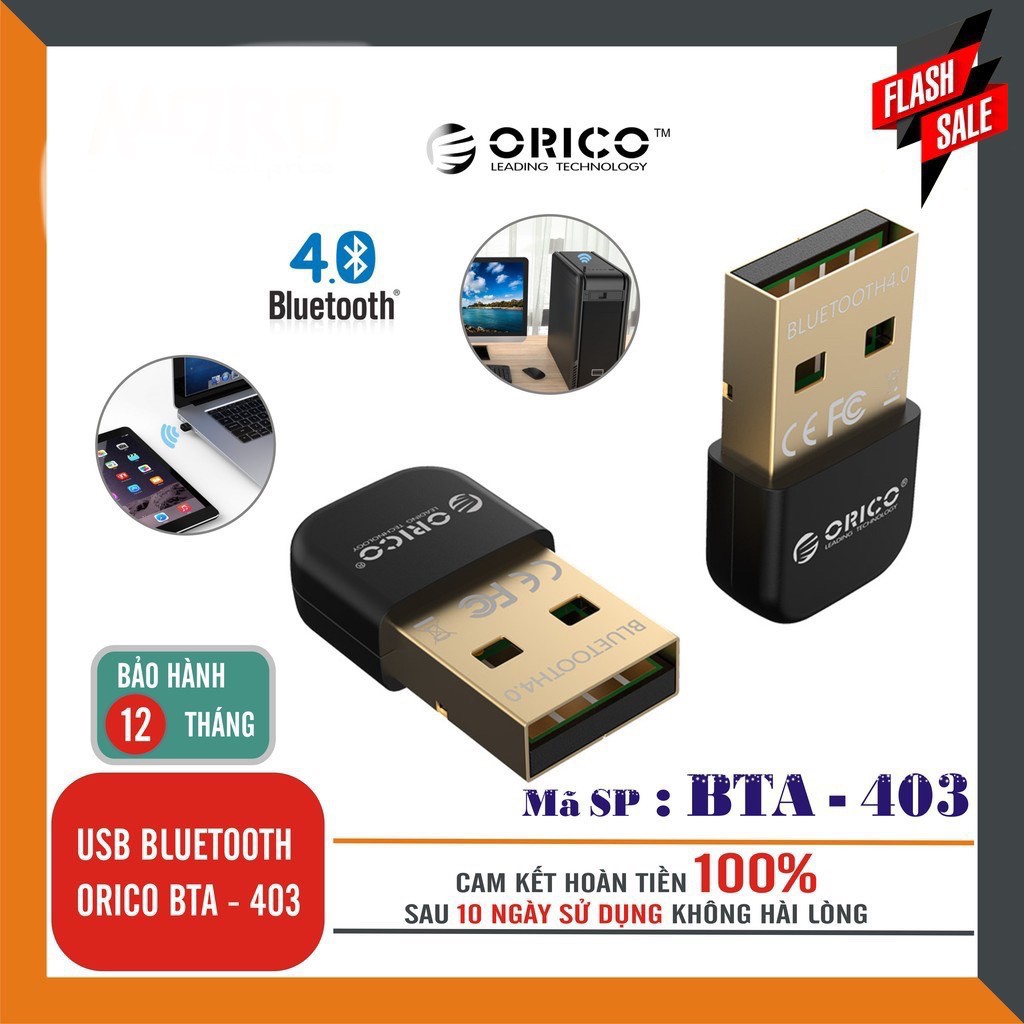 Thiết bị USB Bluetooth cho máy tính Sản phẩm Bluetooth ORICO BTA 403 chính hãng ORICO sản xuất đảm bảo tiêu chuẩn kỹ thuật cũng như chất lượng. Đầu USB 2.0 được mạ vàng giúp chống hoen rỉ chống oxi hóa trong quá trình sau này. Đạt chuẩn Bluetooth 4.0 và cho tốc độ truyền tải dữ liệu lên tới 25 Mbps Sử dụng cho các thiết bị như máy tính, laptop…sử dụng hệ điều hành Windows. Thiết bị có đi kèm đĩa cài đặt, cài đặt cũng rất dễ dàng và nhanh chóng nên bạn cũng có thể tự mình cài đặt