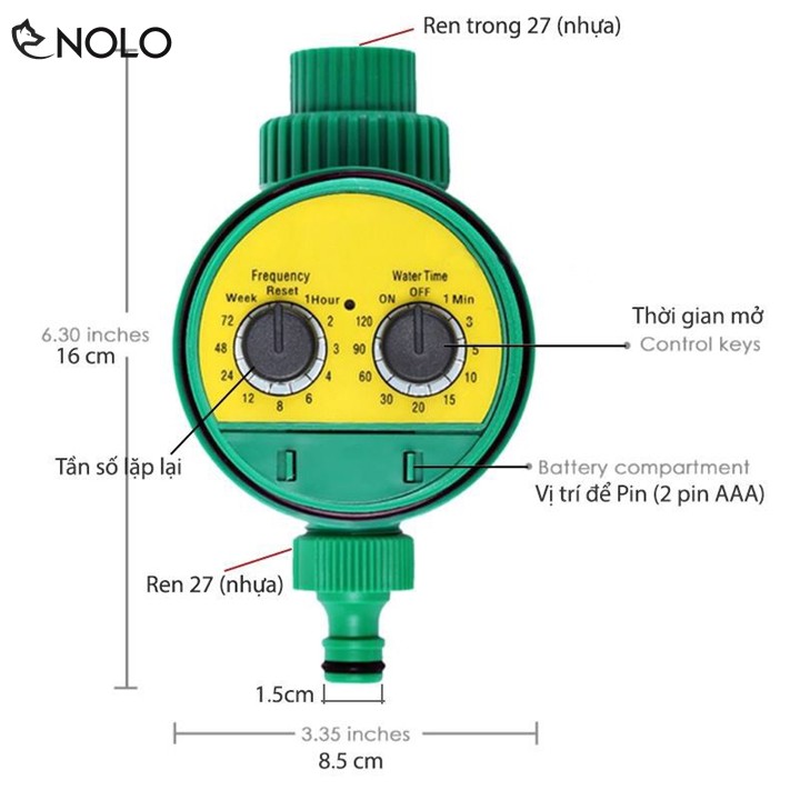 Giới thiệu Bộ Thiết Bị Van Nước Hẹn Giờ Tự Động Tưới Tiêu Theo Chu Kì Nguồn Điện Pin AA Đầu Ren Vào 27mm Đầu Ra Ống Mềm Ren