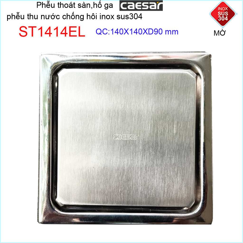 Thoát sàn Caesar, phễu thoát sàn chống mùi hôi Inox 304 cao cấp, phễu thoát nước Caesar 14x14cm ST1414EL D90Kích thước 140mmx140mm ống D90mm