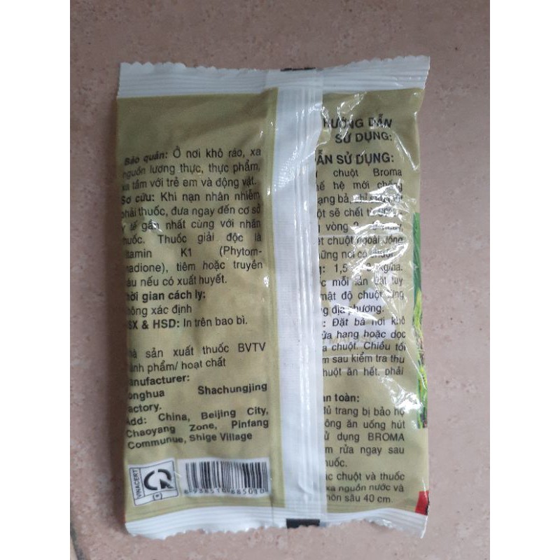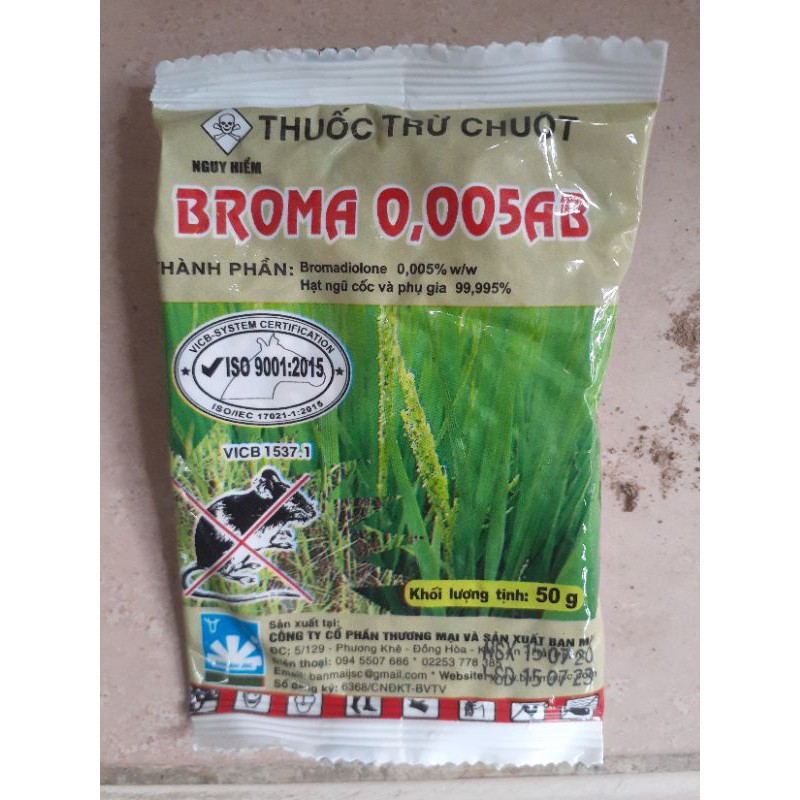 QUÝ KHÁCH VUI LÒNG LIÊN HỆ SHOP QUA ZALO 0974750313Thuốc diệt chuột sinh học BROMA là loại thuốc đang được ưa chuộng nhất trên thị trường bởi hiệu quả cao và độ an toàn khá tốt cho người sử dụng, các loại động vật khác cũng như không gây ô nhiễm môi trường.
