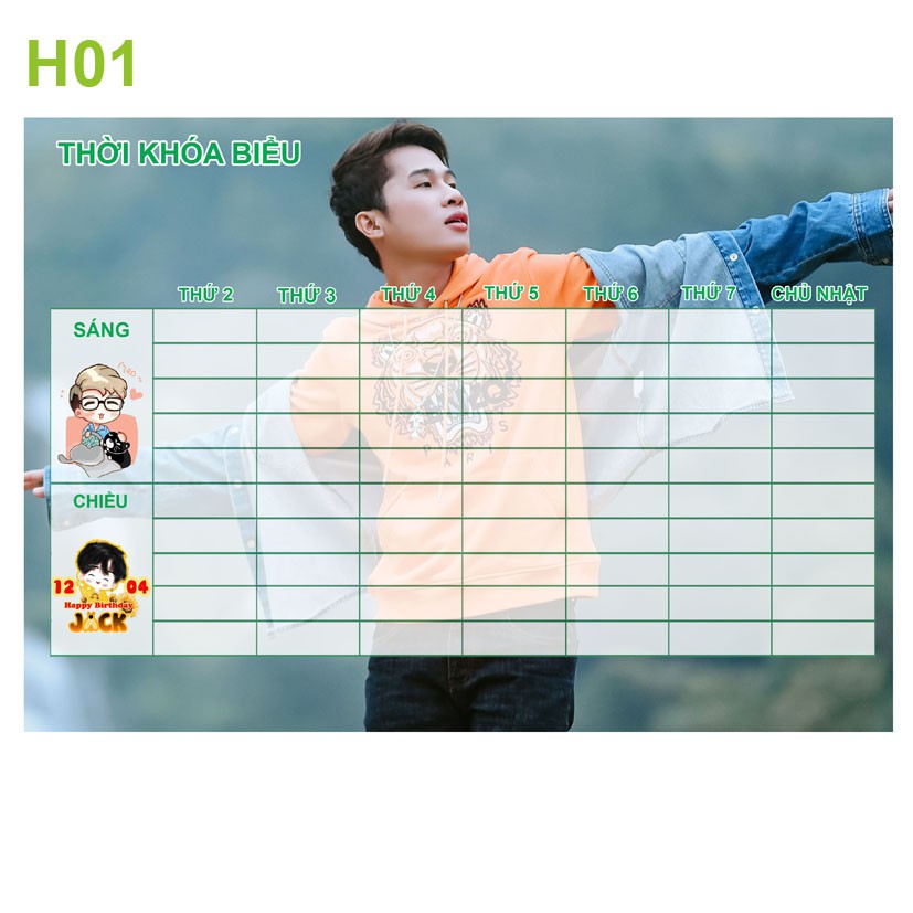 Thời khóa biểu ca sĩ Jack- Phương Tuấn -J97Kích thước : 15x21cm