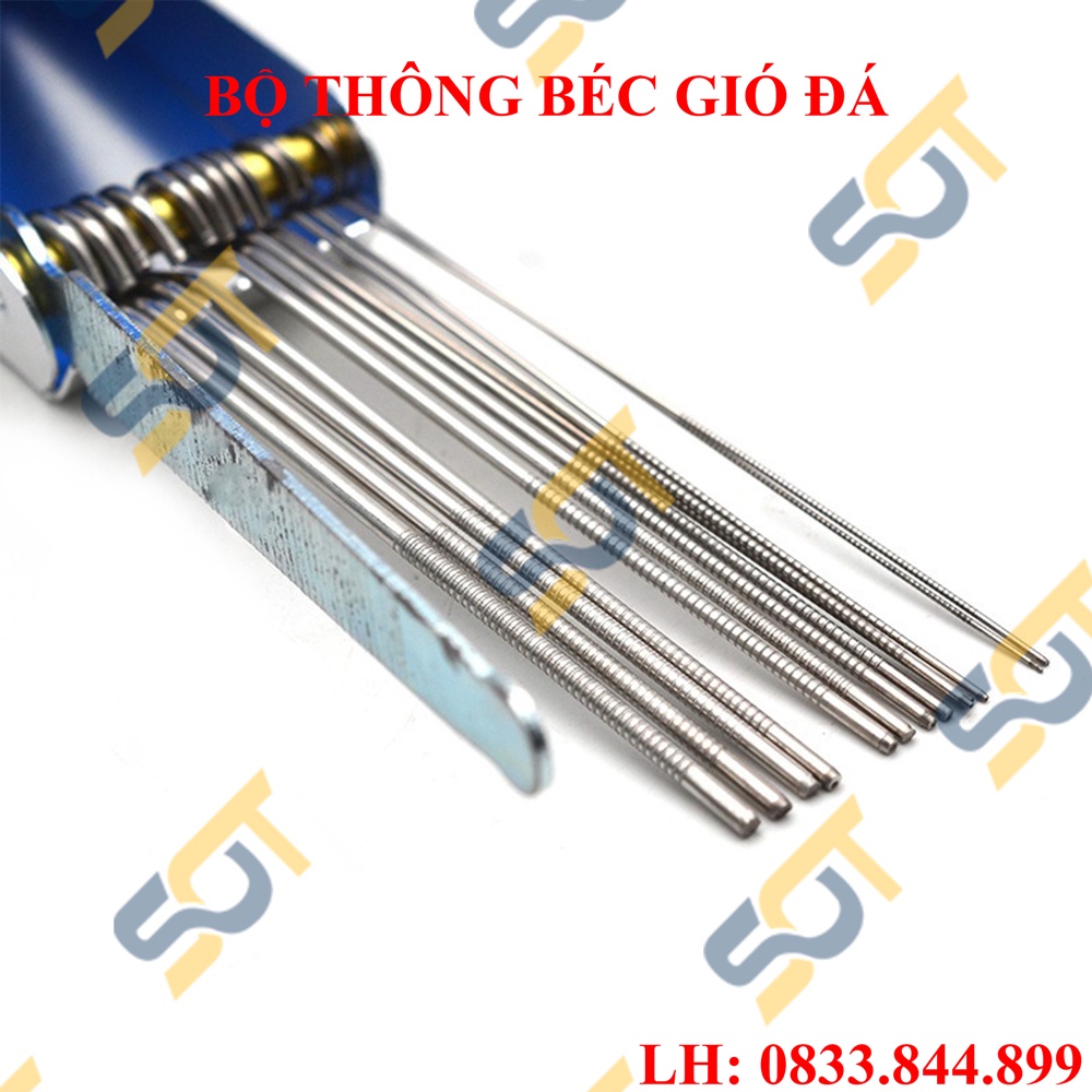 Cấu tạo của BỘ THÔNG BÉC gồm nhiều cây kim tròn, có các đường cắt nhỏ tạo ra bề mặt nhám trên thân như cây dũa để dễ dàng cho việc lấy rỉ ra khỏi béc. Các thanh kim loại có kích thước khác nhau, phù hợp các loại béc khác nhau. Thiết kế vỏ béc kim loại, bao gọn các cây kim tránh cho trường hợp bị cong, gãy.