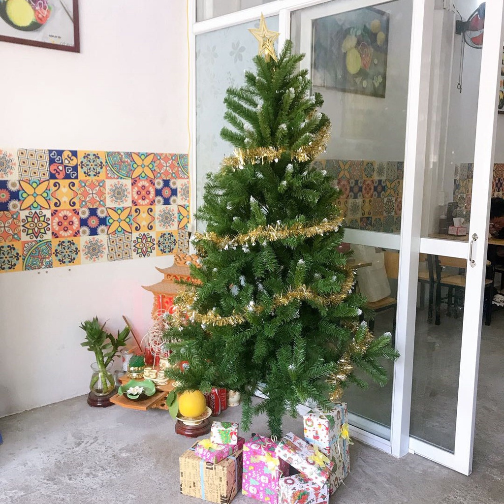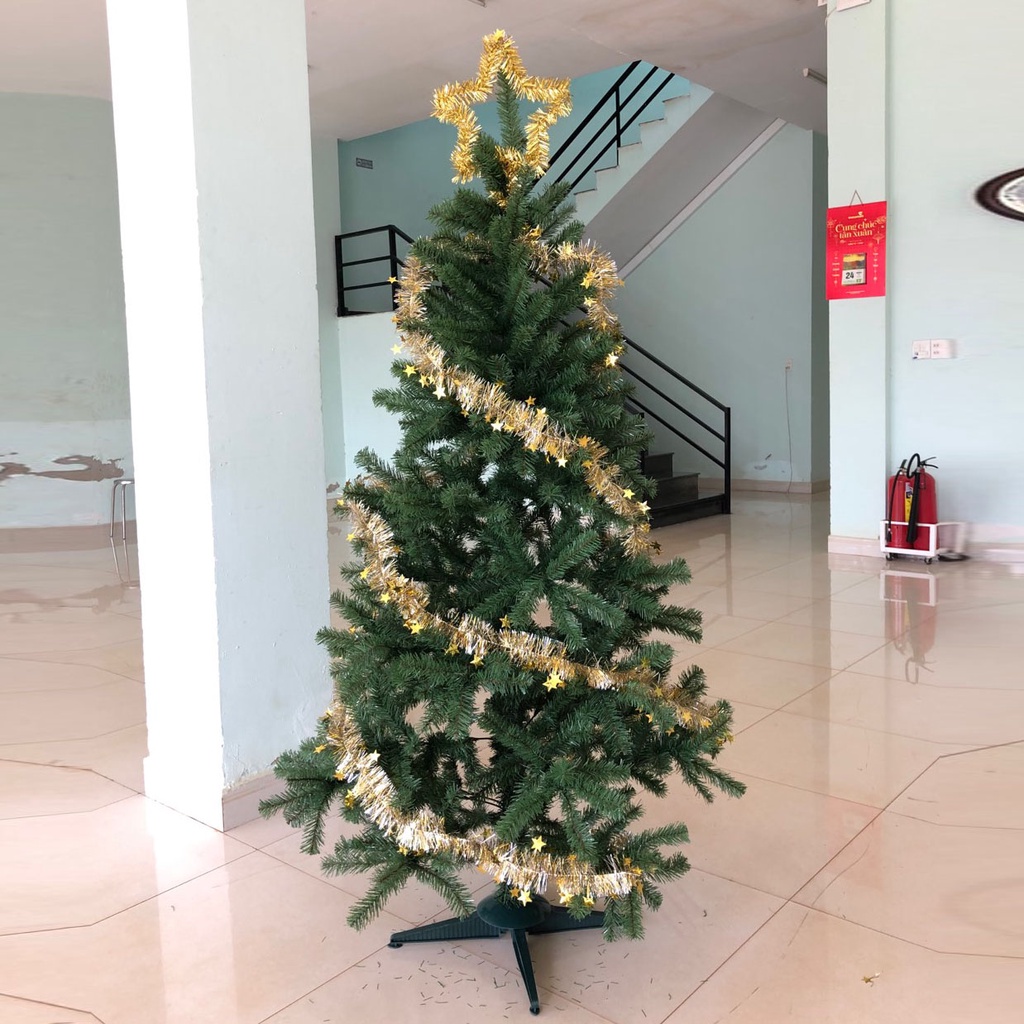 Cây thông noel 1m8 trang trí giáng sinh cho nhà cửa, phòng khách, phòng ngủ kèm dây kim tuyến và ngôi sao đẹp lung linh