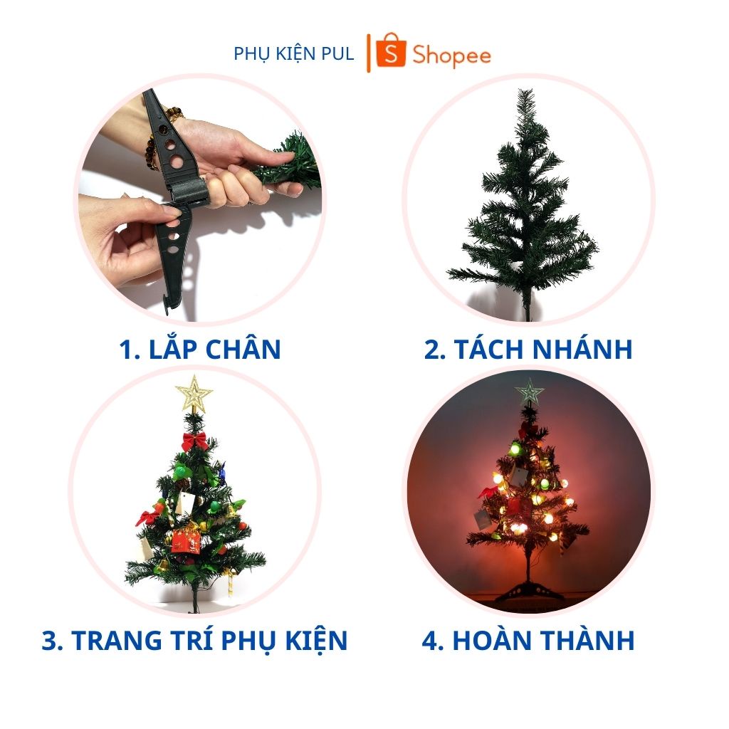 Giới thiệu Cây thông noel mini để bàn 60cm có led kèm phụ kiện đẹp trang trí giáng sinh trong nhà phòng khách phòng ngủ quà tặng