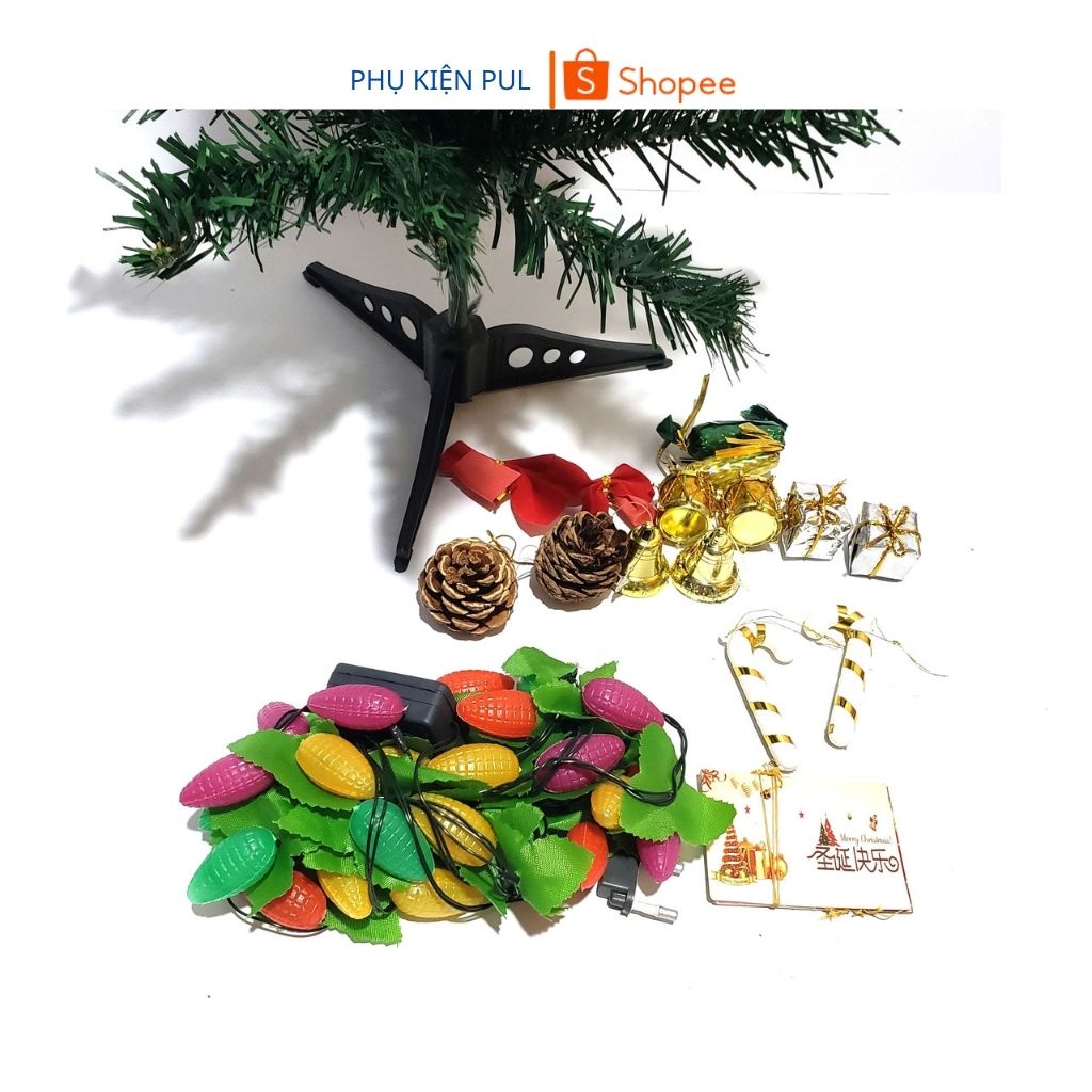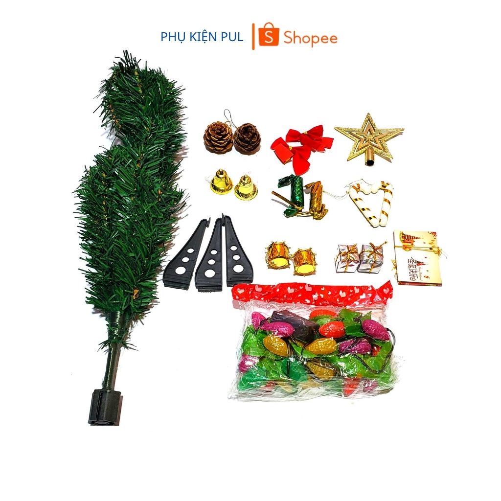 - Bộ sản phẩm cây thông noel mini gồm: 1 cây thông noel 60cm; 1 cây đèn led nháy nhiều màu; 1 túi phụ kiện (gồm: ngôi sao đỉnh, quả thông,...)
