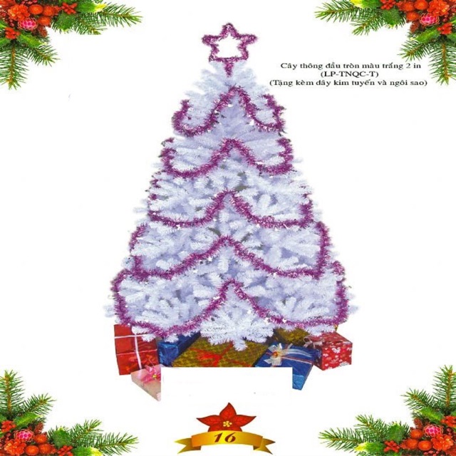 Giới thiệu Cây thông Noel trắng đầu tròn 2 in 90cm - 1m2 - 1m5 - 1m8 - 2m1 - 2m4 - 3m lá dày dặn