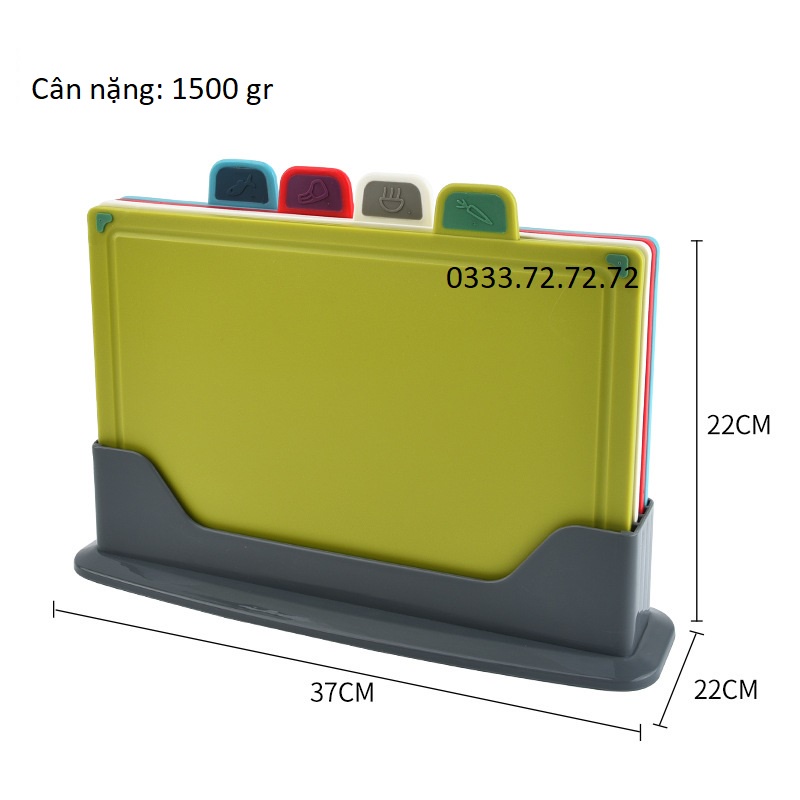 - Làm bằng nhựa nên nhẹ, mỗi thớt tầm 350 g, cả bộ là 1500 g (1.5 kg). Tuy bằng nhựa, nhưng lại là nhựa cao cấp nhất, nhựa TPE, nhựa này chịu được nhiệt độ cao, chịu được mài mòn, chịu được lực tốt. Tuy chịu lực tốt, nhưng cũng đừng lôi ra chém đồ to mọi người nhé, Thớt này thớt thái là chính thôi.
