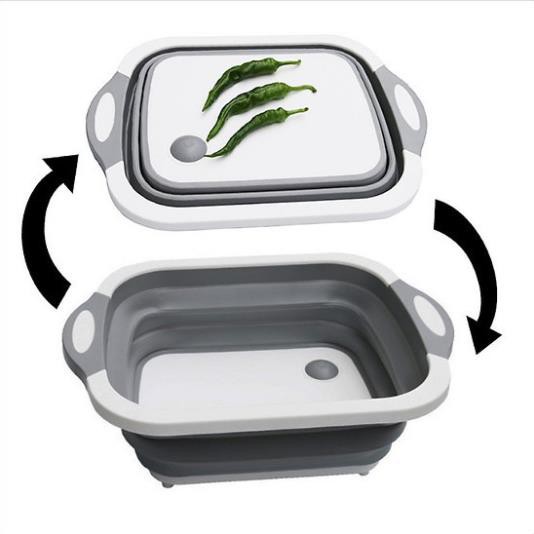 - Tích hợp 3 tính năng trong 1 sản phẩm, vô cùng tiện lợi: Chậu Rửa Gấp Đa Năng - Thớt Đa Năng - Rổ Đựng