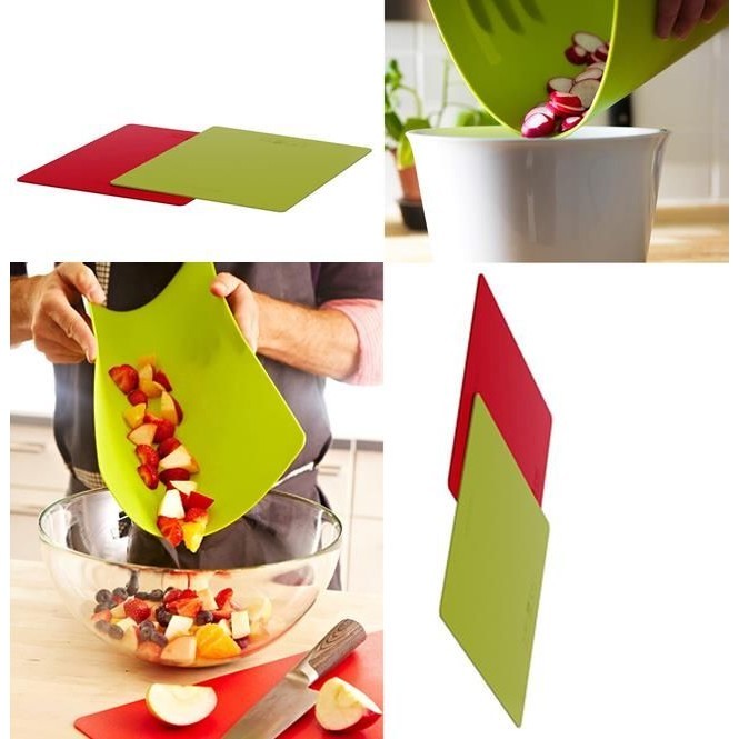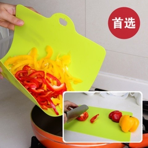 Thớt có thể uốn dẻo nên rất tiện lợi khi cho thực phẩm vào bát, nồi... khi thái xong.