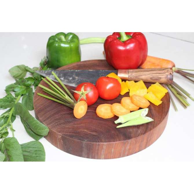 Thớt đường kính 27cm tiện lợi thích hợp dùng để THÁI, không băm chặt mạnh, phù hợp với gia đình ở chung cư diện tích bếp hạn chế.