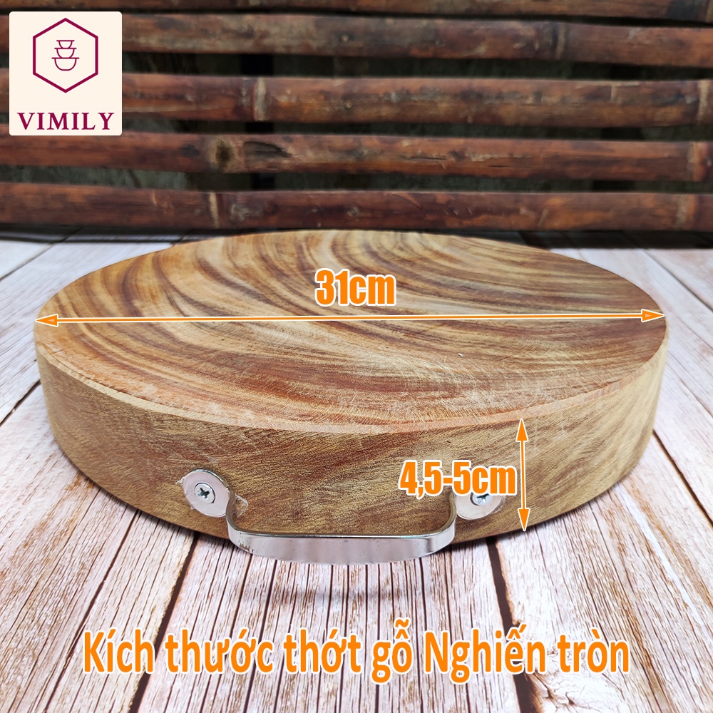 Thớt gỗ nghiến núi đá Tây Bắc tròn không tâm băm chặt thịt xương cao cấp siêu bền VIMILY kích thước 31x5cmChúng tôi cam kết sản phẩm của VIMILY - PHÁT HIỆN KHÔNG ĐÚNG GỖ NGHIẾN ĐỀN BÙ GẤP 10 LẦN