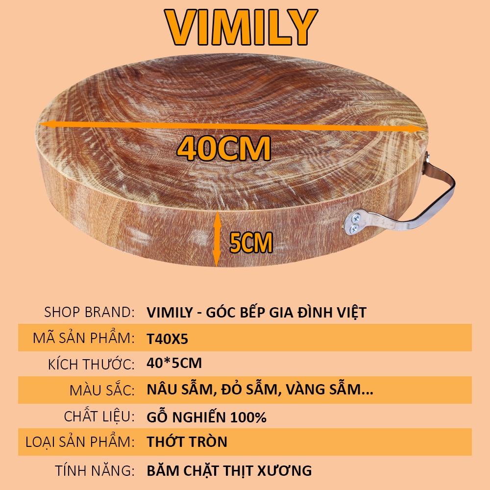 Thớt gỗ nghiến núi đá Tây Bắc băm chặt thịt xương tròn không tâm cao cấp siêu bền VIMILY kích thước 40x5cmChúng tôi cam kết sản phẩm của VIMILY - PHÁT HIỆN KHÔNG ĐÚNG GỖ NGHIẾN ĐỀN BÙ GẤP 10 LẦN