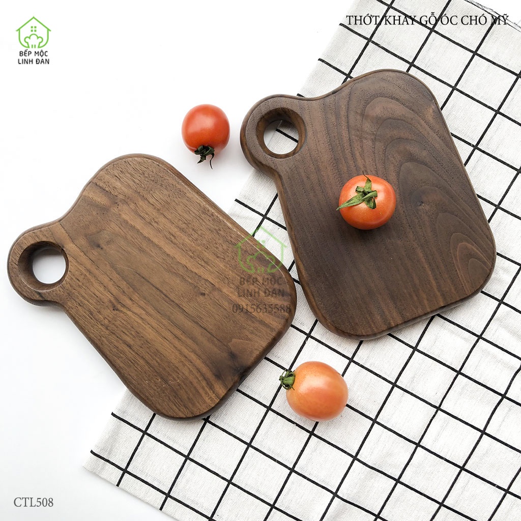 Thớt gỗ óc chó nhập khẩu Mỹ- Sản phẩm được làm từ gỗ óc chó nhập khẩu nguyên tấm từ Mỹ (đã được sấy, xử lý ở Mỹ), là loại gỗ cứng, được xếp vào nhóm gỗ quý, dát gỗ màu kem, tâm gỗ màu từ nâu nhạt đến socola. Vân gỗ cuộn xoáy đặc biệt rất đẹp mắt và sang trọng mà không nhóm gỗ nào có được.