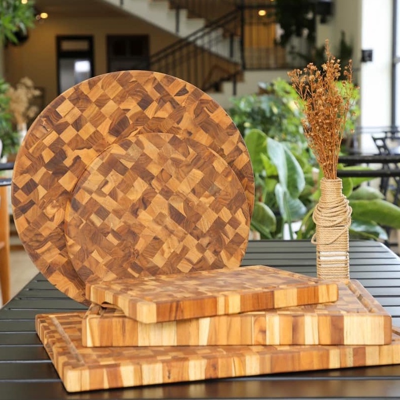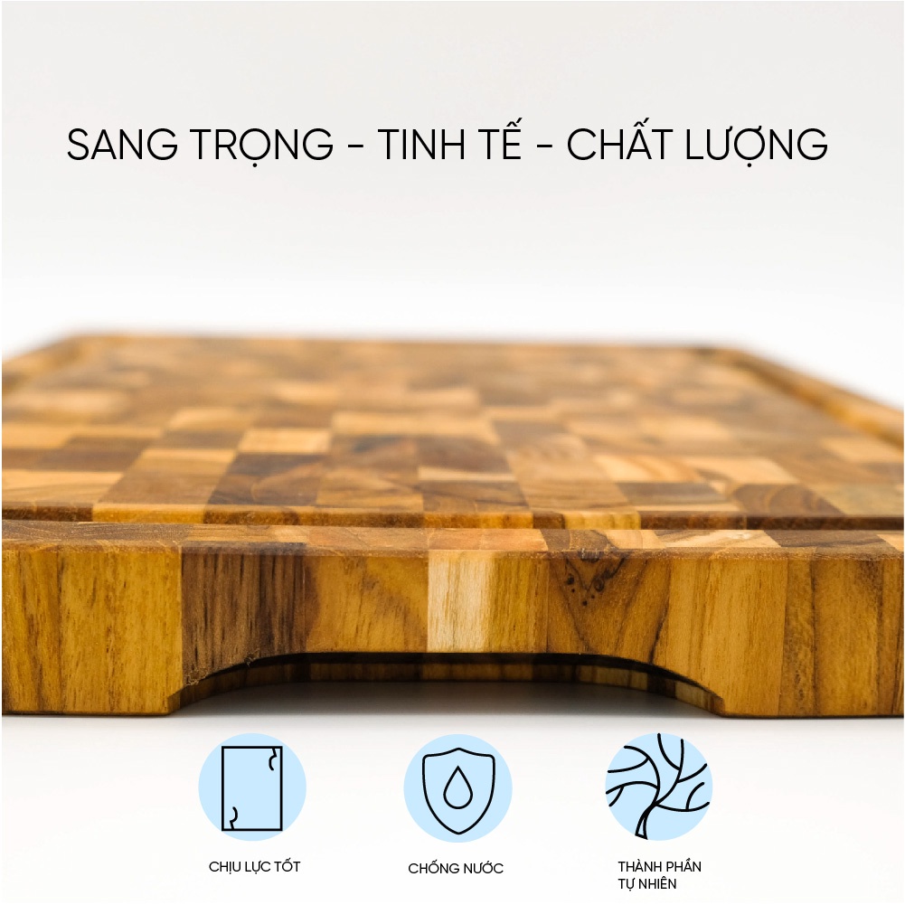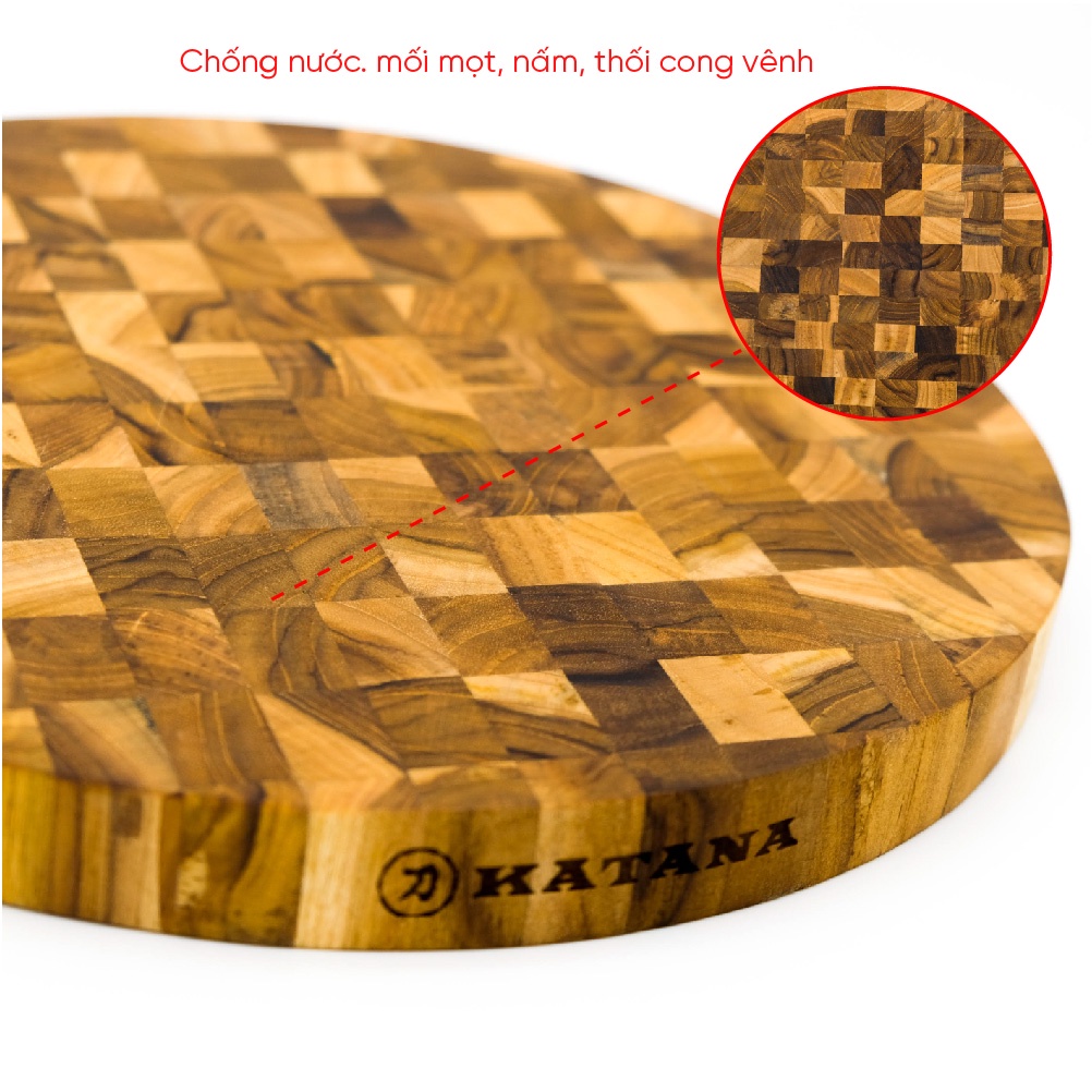 Thớt Gỗ Teak Cao Cấp KATANA - Hình Tròn,Chữ Nhật - Có Đủ Size - Có Tay Cầm /Lỗ Treo/Rãnh - Hàng Chính Hãng BH 12 Tháng