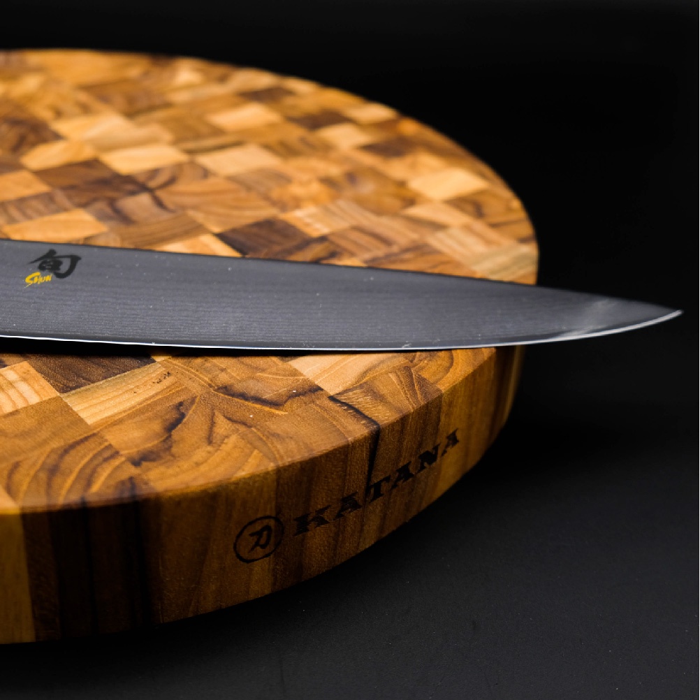 Thớt Gỗ Teak Cao Cấp KATANA - Hình Tròn,Chữ Nhật - Có Đủ Size - Có Tay Cầm /Lỗ Treo/Rãnh - Hàng Chính Hãng BH 12 Tháng 1 ĐỔI 1 TRONG VÒNG 7 NGÀY-----------------------------