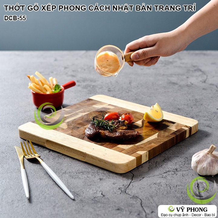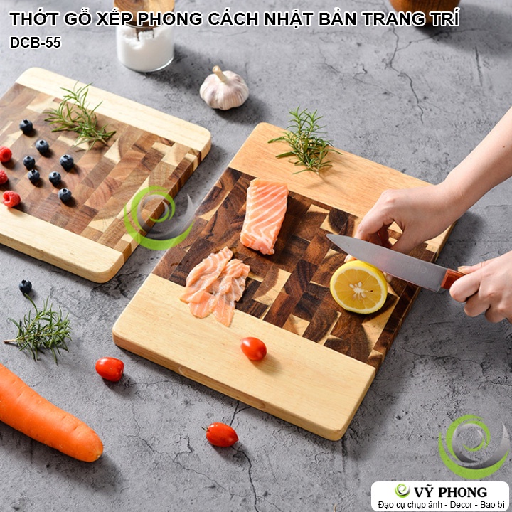 THỚT GỖ TEAK XẾP PHONG CÁCH NHẬT KHAY GỖ GHÉP GỖ TƯƠNG TƯ TỰ NHIÊN TRANG TRÍ BẾP ĐẠO CỤ CHỤP ẢNH SẢN PHẨM INS DCB-55