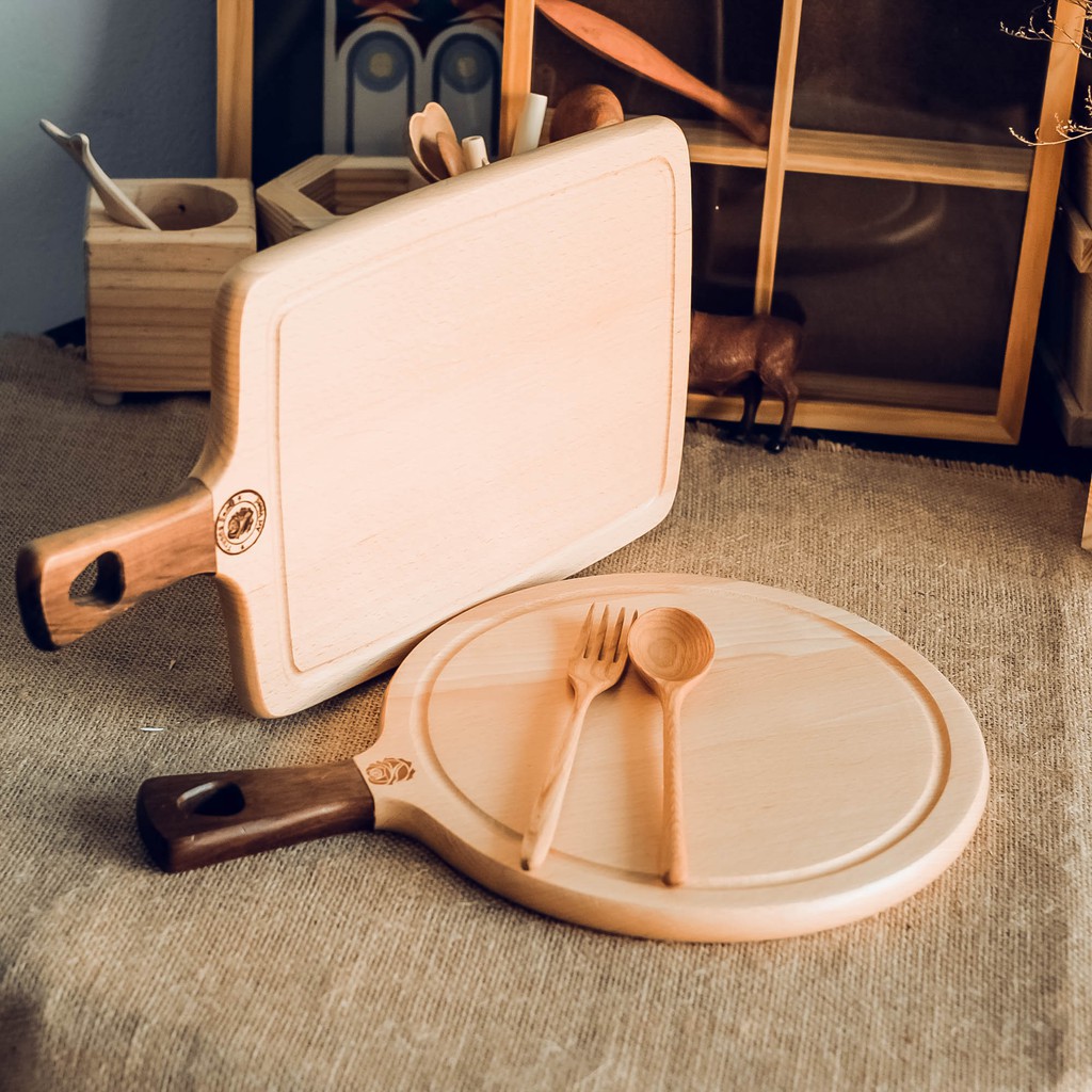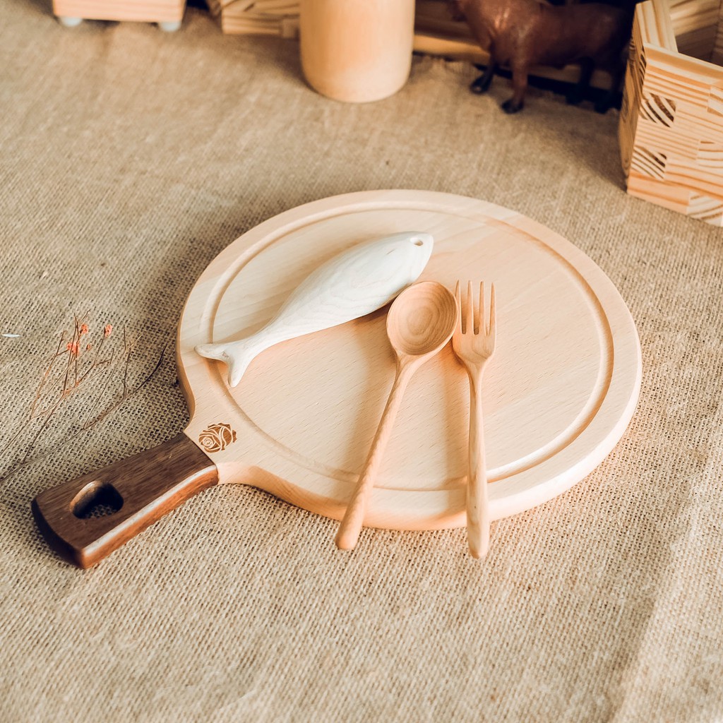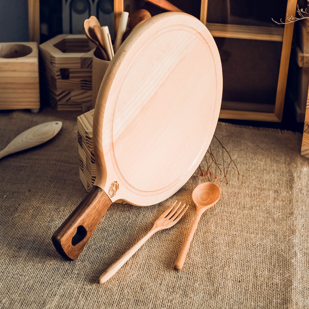 Thớt gỗ tròn có tay cầm - Làm bếp - Phụ kiện trang trí