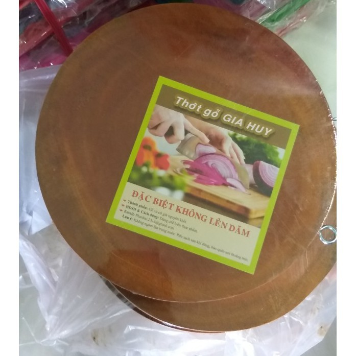 Thớt gỗ tròn size 26 dầy dặn nhé. Chiều dầy 20-30cm. Thớt gỗ tự nhiên nên ko ra mầu. Chất liệu tự nhiên chắc chắn nên có thể chặt thoải mái nhé mn