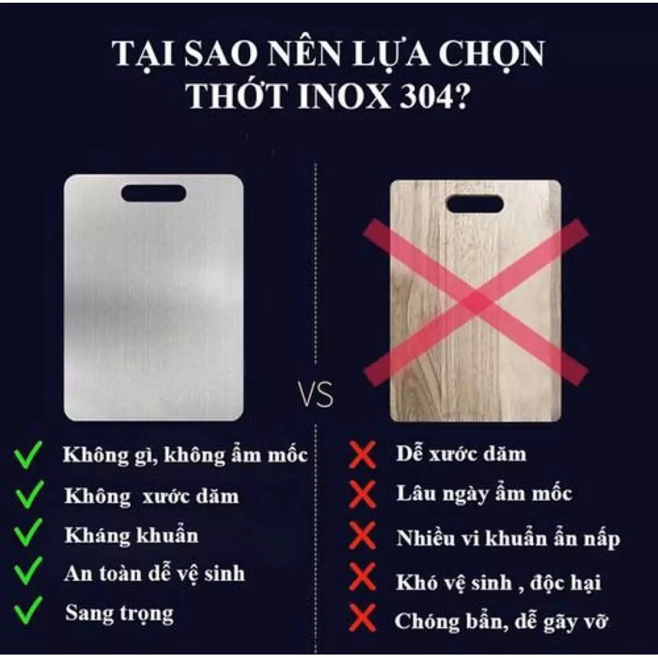 Nhà cửa & Đời sống > Dụng cụ nhà bếp > Thớt || Thớt inox 304 cao cấp chống rỉ sét size 29x20cmCòn hàng