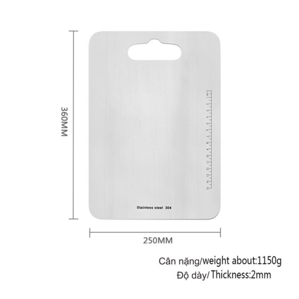 - Tên sản phẩm: Thớt inox 304 cao cấp kháng khuẩn - chống ẩm mốc độc hại, vệ sinh dễ dàng, tiện lời, cường lực không mùn gỗ, an toàn