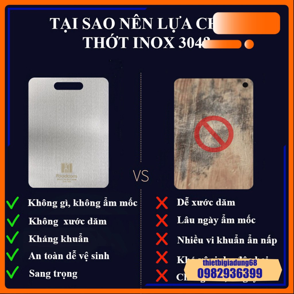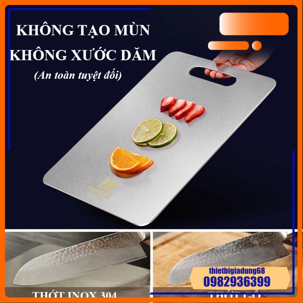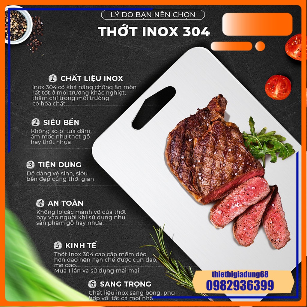Thớt Inox 304: Rất nhiều KHÔNG: Không Nấm Mốc, Không Rỉ Set, Không Dính Thức Ăn Thừa, Không Hao Mòn,…Và Còn nhiều Không nhữa chờ bạn khám phá.Trong cuộc sống hiện đại ngày nay, không gian nhà bếp của mỗi gia đình đã thay đổi hơn xưa rất nhiều, đặt biệt là dụng cụ làm bếp, với rất nhiều mẫu mã đa dạng, phát minh tiện dụng đã giúp cho việc làm bếp trở nên dễ dàng hơn bao giờ hết
