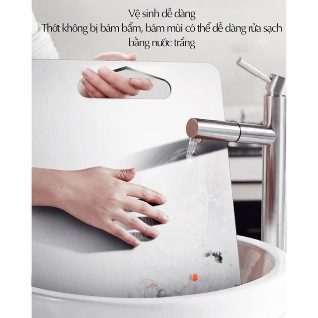 👉 Thớt Inox 2 mặt không lo ẩm mốc, dễ dàng vệ sinh, siêu bền đẹp cùng thời gian, không bị xước dăm, ăn mòn, nấm mốc độc