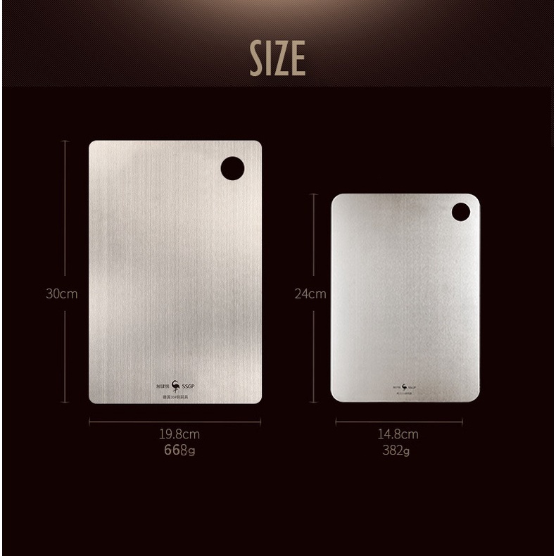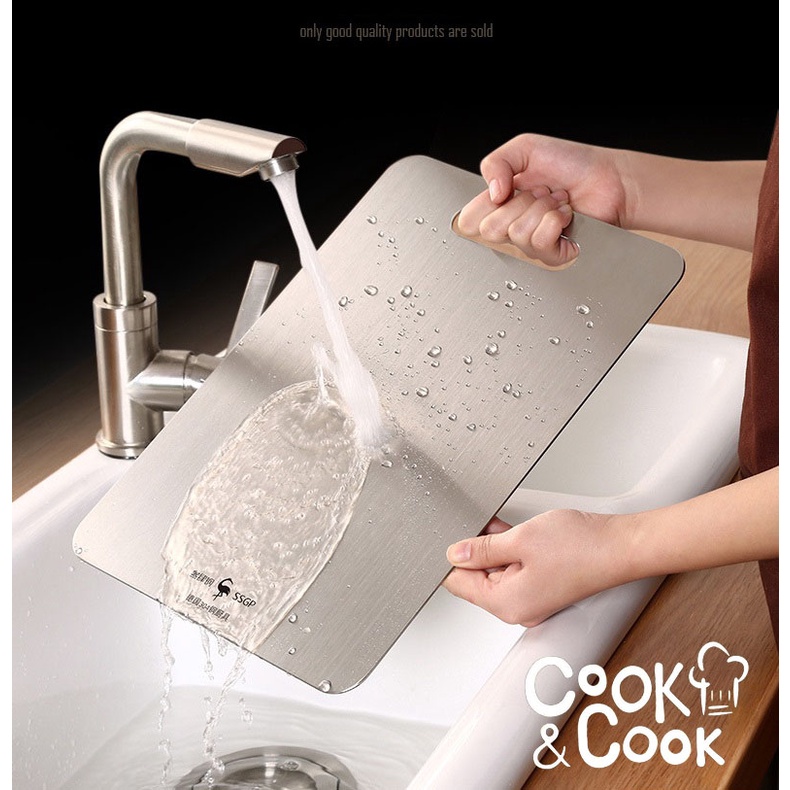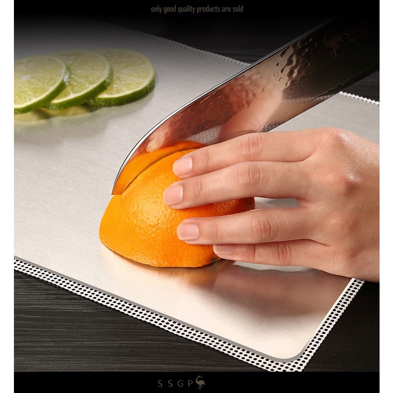 Nhà cửa & Đời sống > Dụng cụ nhà bếp > Thớt || Thớt inox 304 SSGP kháng khuẩn sơ chế thực phẩm có đầu treo hình tròn bền đẹp kèm tấm lót thớtCòn hàng