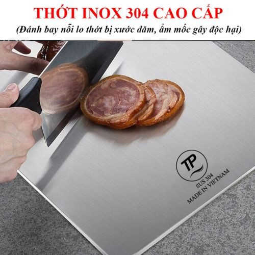 THỚT INOX304 CAO CẤP KHÁNG KHUẨN - CHỐNG NẤM MỐC - KHÔNG HAN GỈ - AN TOÀN TIẾT KIỆM SIZE 33.5 x 23 cm Inox sus 304 tiêu chuẩn Posco Hàn Quốc, được gia công sản xuất bởi Công ty CP gia công kim loại tấm Tân Phong DH Việt Nam đang được nhiều chị em nội trợ lựa chọn bởi công dụng tuyệt vời:- Siêu kháng khuẩn, chống nấm mốc, không mùn thớt - Ưu điểm mà không loại thớt nào trên thị trường hiện nay có được.