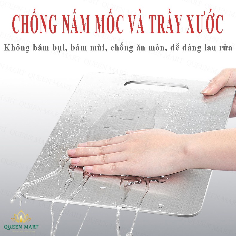 - Không gỉ sét, không bám bẩn, không thấm nước, không xước dăm ra mủn, ẩm mốc như thớt gỗ thớt nhựa ⇒ An toàn với thực phẩm, không sợ thực phẩm nhiễm bẩn, nhiễm vi khuẩn gây bệnh cho con người.