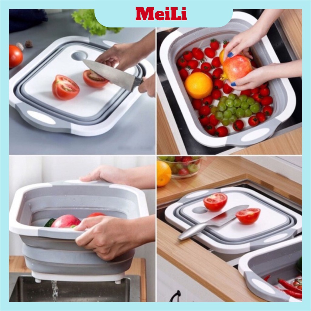Chậu gấp gọn kèm thớt tiện dụng Thớt đa năng kiêm chậu xếp gọn thớt chậu rổ đựng đồ chậu thớt đa năng tiện dụng
