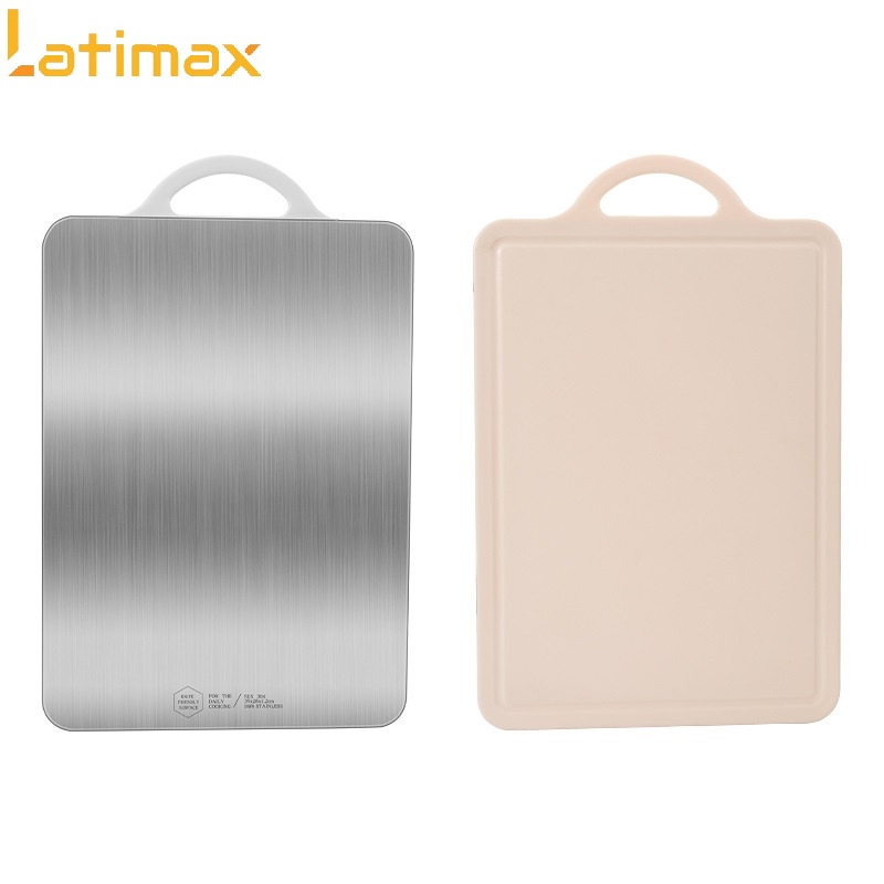 Thớt kháng khuẩn 2 mặt Inox 304 và nhựa PP dùng trong công nghiệp chế biến thực phẩm Cao cấp LATIMAX Size 32 x 23 cm