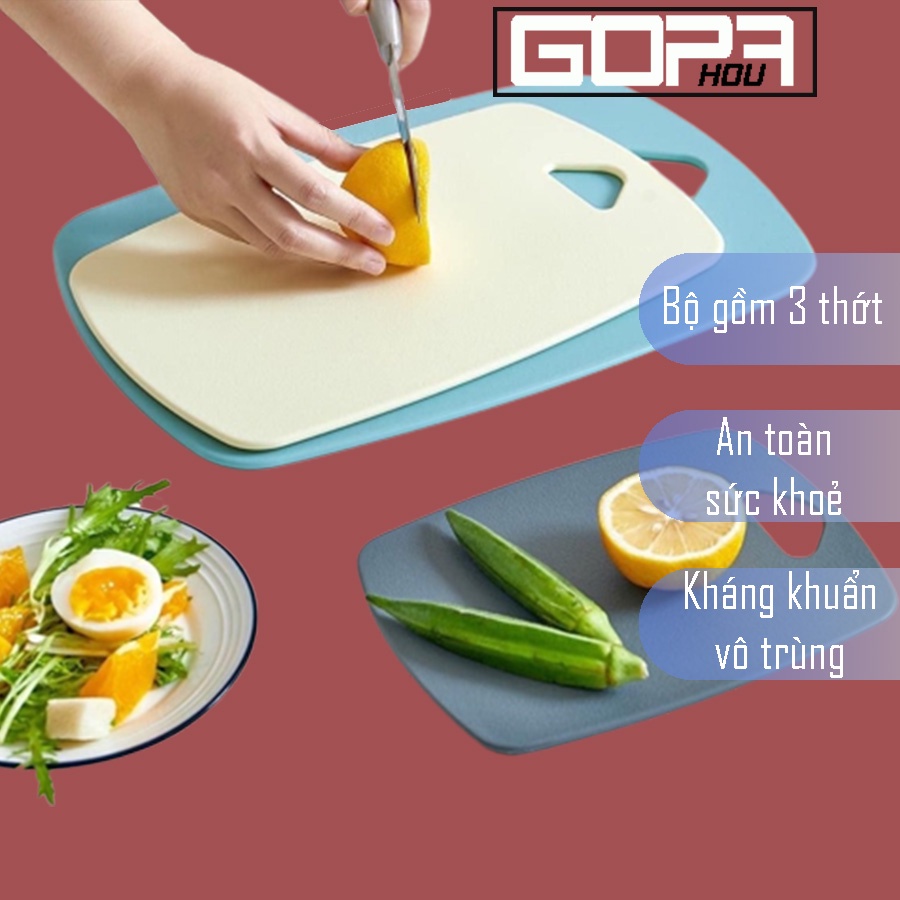 Thớt kháng khuẩn nhựa dày lúa mạch 3 món dùng thái, chặt nhà bếp cao cấp GOPA HOU