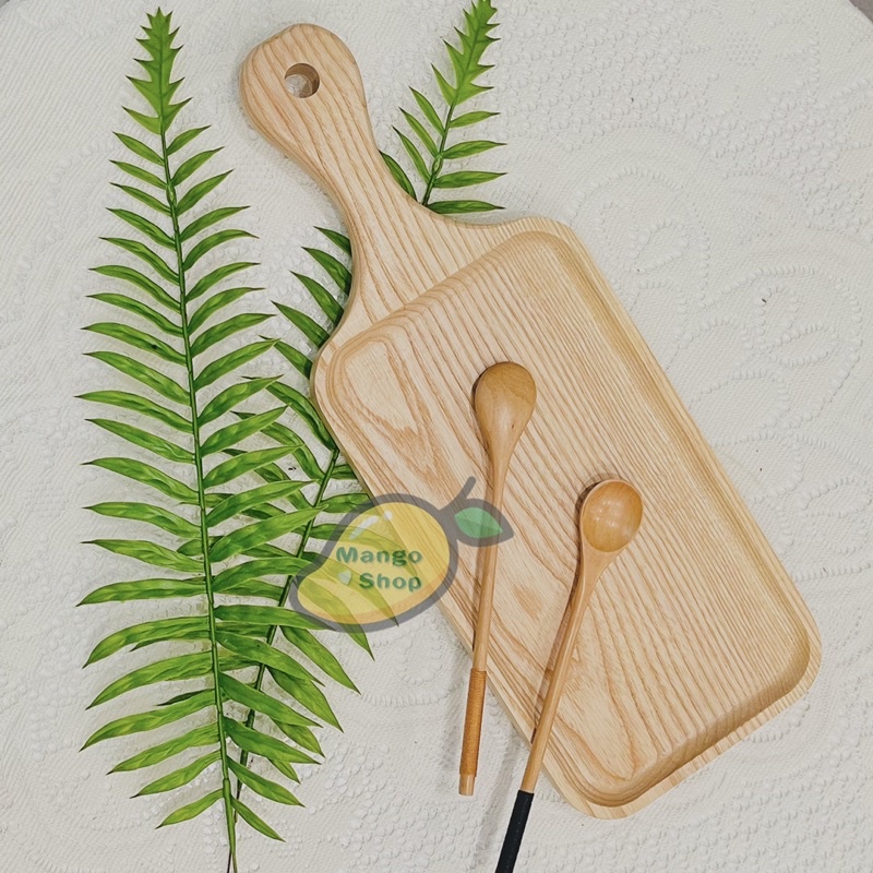 Thớt khay gỗ tần bì nguyên khối tay cầm lõm decor trang trí sản phẩm
