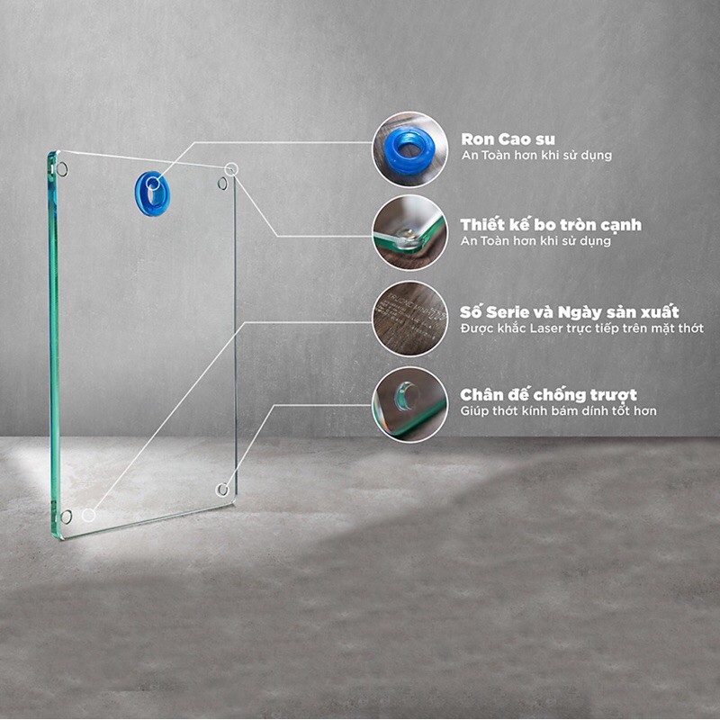 - An toàn cho người sử dụng: Kính cường lực an toàn vệ sinh, không gây nguy hiểm cho người sử dụng.