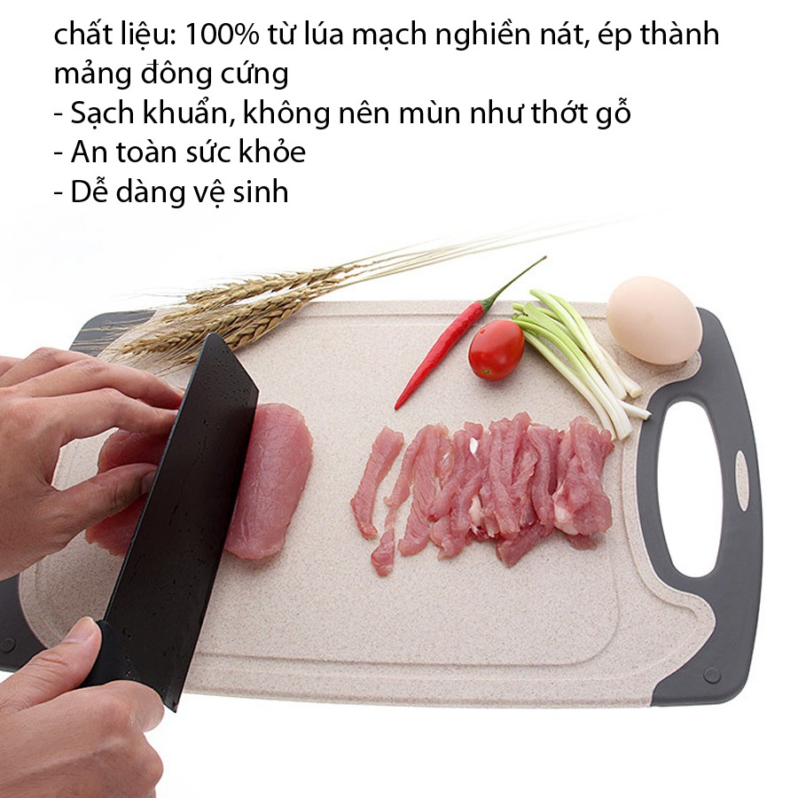 Thớt được làm từ 100% lúa mạch nghiền nát, không làm ổ cho các loại vi khuẩn gây bệnh lưu trú, đặc biệt là vi khuẩn gây ung thư ruột