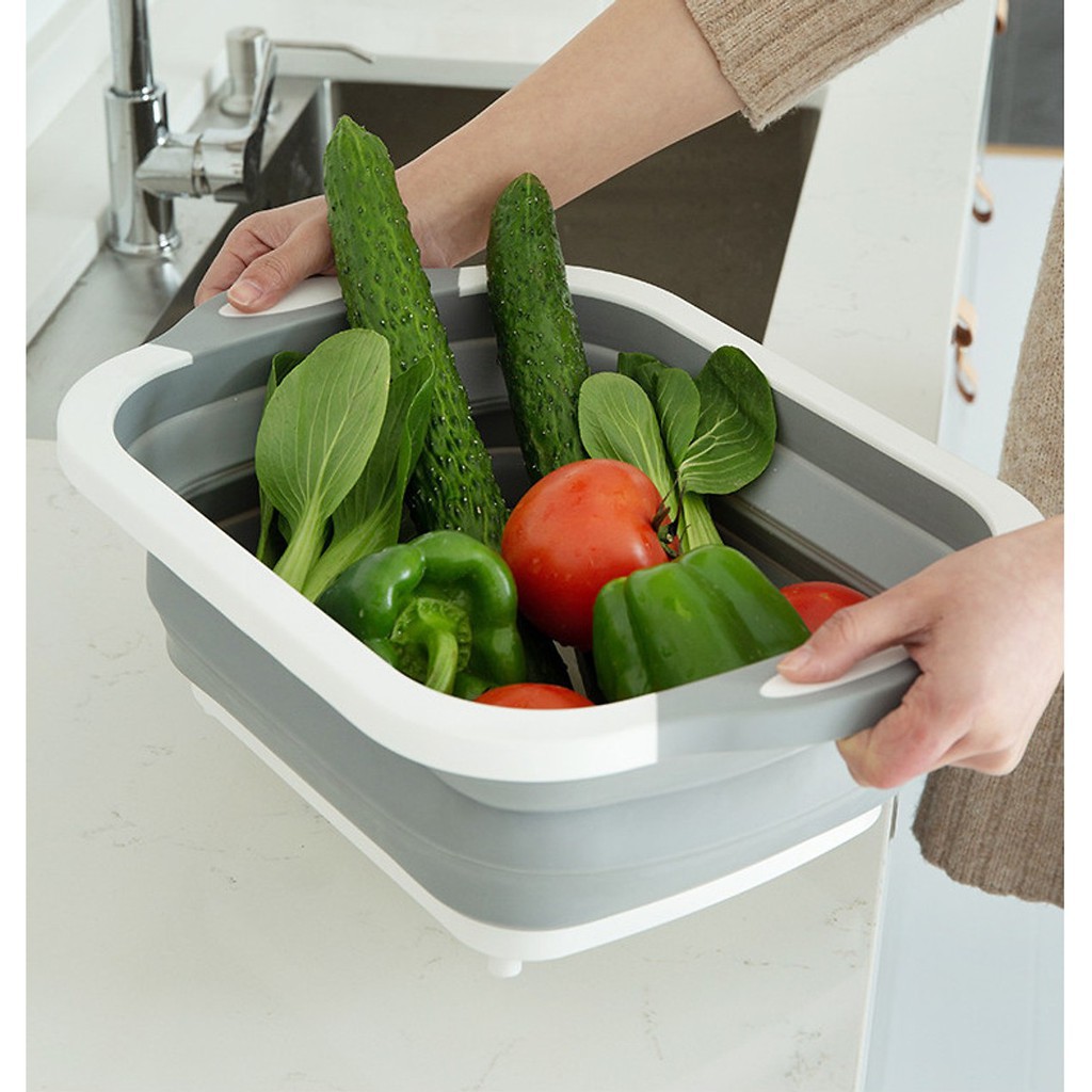 - Công dụng: Chậu rửa rau và có thể gấp gọn để làm thớt thái hoặc băm.